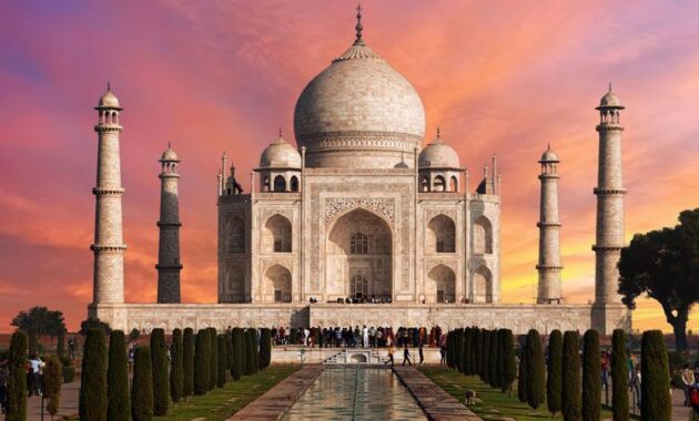 The Taj Mahal, a shimmering white marble mausoleum, stands as an eternal testament to love. Commissioned by Emperor Shah Jahan in memory of his beloved wife, Mumtaz Mahal, this UNESCO World Heritage Site is renowned for its breathtaking beauty and intricate craftsmanship. The gardens and reflecting pool create a serene atmosphere, making it a spiritual oasis in bustling Agra. As you gaze upon its splendor, ask yourself: will you take the time to uncover the artistry behind its design?