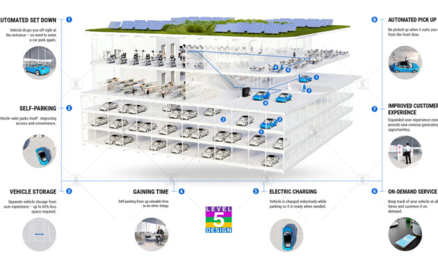 A cutting-edge advancement in parking design is the implementation of automated parking systems (APS). These systems revolutionize the way vehicles are parked, utilizing robotic technology to park cars in compact spaces. With no need for drivers to enter the parking area, these systems optimize space utilization significantly. The architecture of a facility housing an APS necessitates a different approach—designers must create intricate layouts for the robots and ensure robust infrastructure to support the mechanical components.