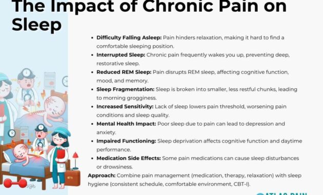 Recognizing the bidirectional relationship between pain and sleep is paramount. Poor sleep can exacerbate pain, and conversely, chronic pain can disrupt sleep. Therefore, a holistic approach that addresses both conditions simultaneously is often the most effective strategy. This may involve a combination of pharmacological interventions, such as analgesics and sleep aids, as well as non-pharmacological approaches, such as cognitive behavioral therapy for insomnia (CBT-I), pain management techniques, and lifestyle modifications. Careful monitoring of treatment response and ongoing adjustments to the treatment plan are essential for optimizing outcomes.
