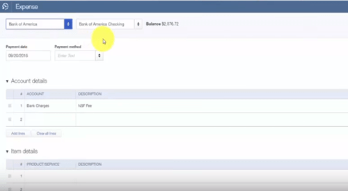 Now, record the fee that your bank charged you for the bounced check. This is a separate expense that needs to be accounted for. Utilize the “Bounced Check Fee” item you created earlier.