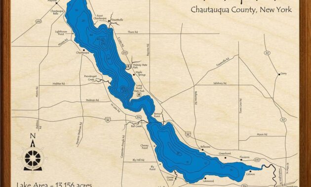Wood Laser Cut Map of Chautauqua Lake NY Topographical