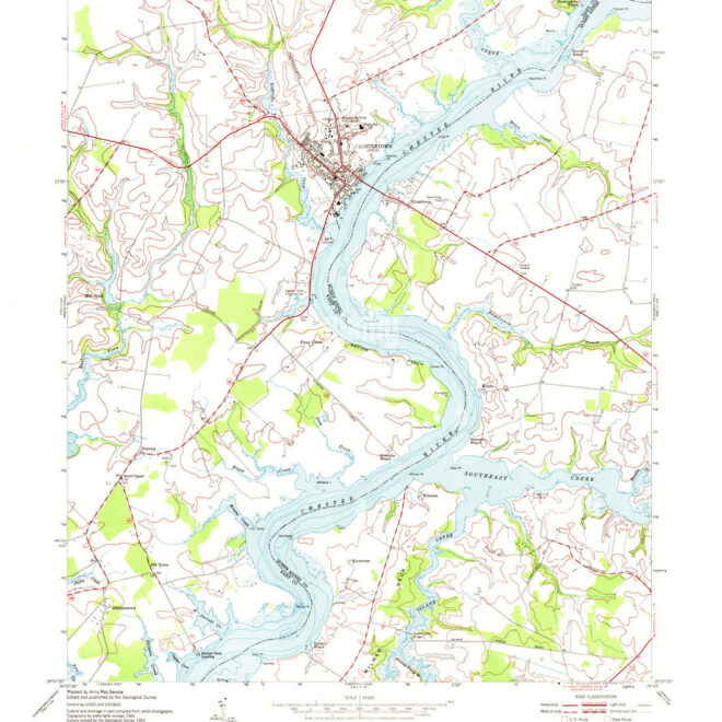 This topographical map, produced by the US Geological Survey in 1953, offers a detailed snapshot of the geographical features and layout of Chestertown during that period. With meticulous contour delineations and landmarks, it allows one to appreciate how development and topography have influenced the town’s growth over decades.