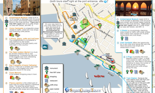 For cruise travelers, this comprehensive guide encapsulates the best activities and sights accessible from the port. Travelers can utilize this map to discover the seamless connectivity of Civitavecchia’s cultural tapestry. Rich with historical intrigue and modern allure, the city invites exploration from every angle.
