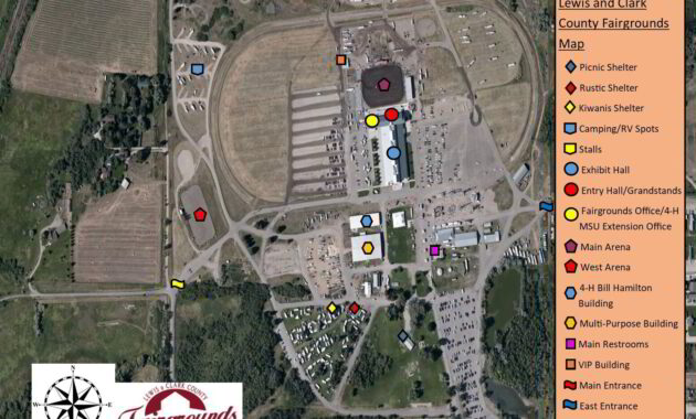 This map specifically highlights the facility rentals available at the Lewis & Clark County Fairgrounds. It delineates various event spaces, making it easy for potential renters to visualize their options. From expansive exhibition halls to intimate outdoor areas, the layout ensures that every event can be tailored to meet specific needs.