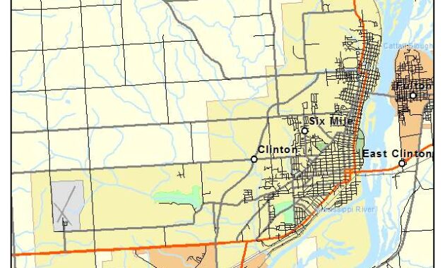 This comprehensive county map encompasses the wider geographical expanse surrounding Clinton, IA. It serves a broader purpose, illustrating the county’s borders, natural landmarks, and demographic distribution. Such detailed cartography is instrumental for governmental planning and resource allocation, depicting a visual narrative of Clinton County’s socio-economic landscape.