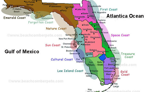 Florida Coastal Regions, Map of Florida Coastal Regions, Travel Florida
