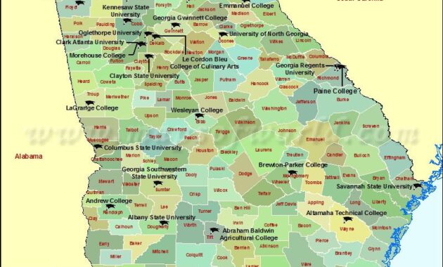 This comprehensive map delineates the various colleges and universities within Georgia, presenting an accessible overview of where these educational establishments are situated. From urban centers like Atlanta to the tranquil landscapes of rural areas, Georgia’s higher education institutions are strategically positioned to provide students with diverse learning environments.