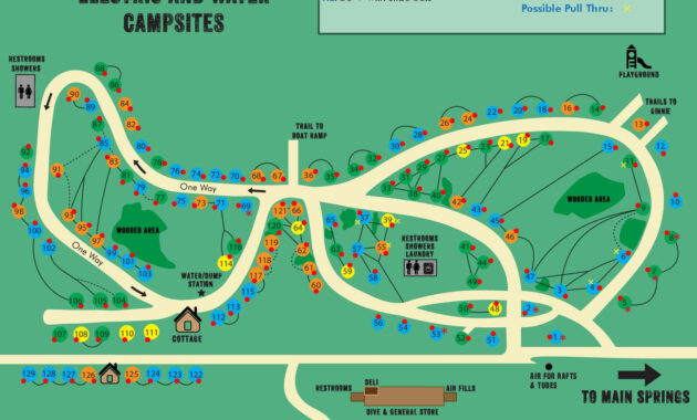 The above map provides an overview of Ginnie Springs, illustrating not only its intricate layout but also highlighting the numerous springs that characterize this breathtaking site. The serene blue waters are fed by natural springs, creating a stunning play of color against the verdant backdrop. The layout depicted on the map emphasizes the various entry points, swimming areas, and trails winding through the sanctuary. Each contour and feature tells a story of the land’s geological history, captivating the attention of both nature enthusiasts and casual visitors.