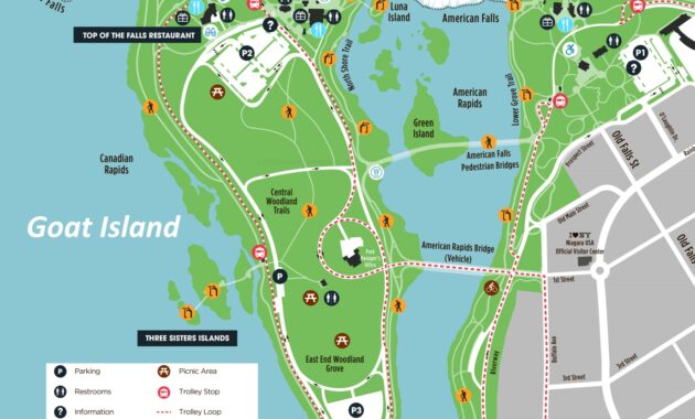 The geographical charm of Goat Island is depicted vividly in its maps, showcasing its varied terrains and alluring features. The island boasts lush greenery interspersed with striking rock formations, plunging cliffs, and panoramic vistas that transport onlookers to a world reminiscent of a fantasy landscape. The cartography of Goat Island is not merely functional; it serves as a lens through which one can appreciate the natural artistry that unfolds across this unique landform.