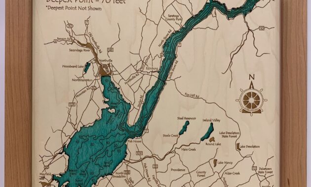 Great Sacandaga Lake - Laser Carved Wooden Relief Map