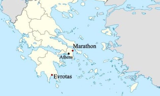 As you traverse the swirling pathways depicted on the map, one begins to appreciate the diverse array of terrains—rugged hills, lush valleys, and pristine coastlines. This juxtaposition of land and sea invites contemplation about the ancient events that transpired in such a stunning setting. Where, exactly, did the fabled hero Pheidippides run from, and how did the geography shape this legendary story?