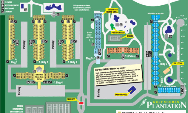 The Gulf Shores Plantation Resort Map serves as a gateway to understanding the intricate tapestry of this coastal haven. With its vivid coloration and meticulous details, the map is not merely a navigational tool but an artistic representation of the region’s diverse landscapes. Visitors can trace pathways that lead from tranquil beaches to sprawling pools and idyllic nature trails. Each segment of the map invites exploration, functioning as an invitation to immerse oneself in the natural beauty surrounding the resort.