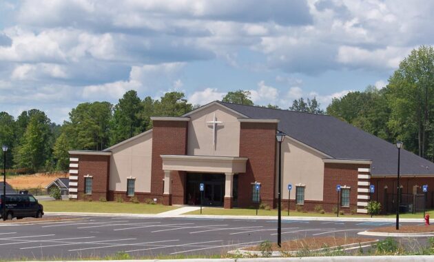 Floor Plan: This structure embraces a traditional yet contemporary design, with a sizeable nave that serves multiple functions. The fellowship space is adorned with artistic elements, making it a sought-after venue for community events.