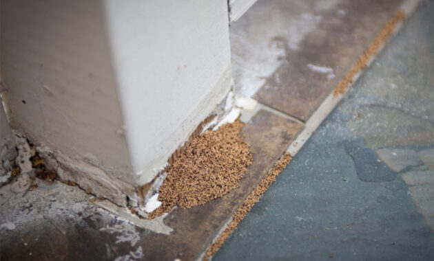 - Sawdust-like droppings: One of the most common signs of termite presence is frass, which is essentially termite excrement that resembles small wood pellets or sawdust. Finding these droppings near wooden structures indicates active feeding.