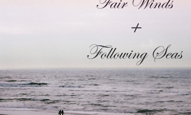 From a linguistic perspective, the phrase is composed of two distinct elements. “Fair winds” refers to favorable winds that help propel a vessel forward, while “following seas” describes ocean waves that move in the same direction as the ship, thus minimizing resistance. Together, they convey a symbiotic relationship between the sailor, the ship, and the natural elements, emphasizing harmony and the guidance of nature in the navigation experience.