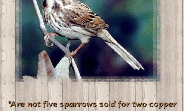 Historically, the phrase originates from the biblical passage in the Gospel of Matthew (10:29-31), where it is stated that not a single sparrow falls to the ground without God’s knowledge. This verse serves as a reminder of the omnipresence and omnipotence of the divine. It illustrates a striking juxtaposition between the vastness of the universe and the intimate concerns of human life. The initial imagery of a sparrow, often considered a mere nuisance or background presence, transforms into a symbol of God’s meticulous care for His creations.