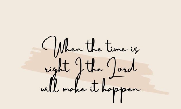 The correlation between time and fulfillment is a prominent theme throughout biblical literature. The phrase “the time is right” suggests an awareness of the timing essential to the execution of divine promises. This understanding can evoke a sense of patience and anticipation among believers. It hints at the reality that manifestations of hope are not always instantaneous; rather, they unfold in accordance with a greater cosmic order devised by divine wisdom.