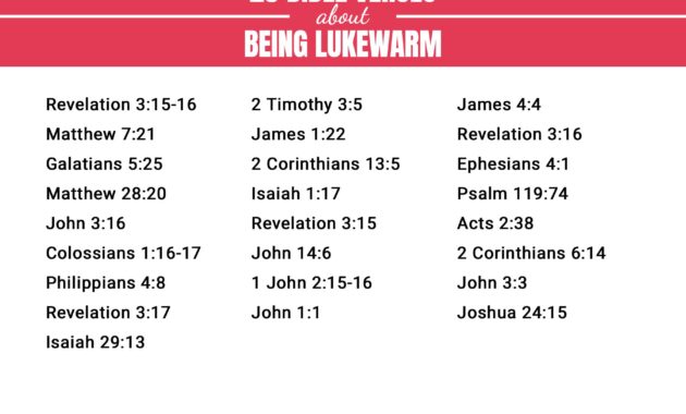 In biblical parlance, the term “lukewarm” often evokes a vivid image—one that juxtaposes warmth and coldness, embodying ambivalence and indifference. This metaphor finds its zenith in the Book of Revelation, where Christ admonishes the church of Laodicea, likening their tepid faith to water that is neither refreshingly cold nor appreciably hot. The resonance of this imagery invites a deeper exploration of its connotations within a theological framework.