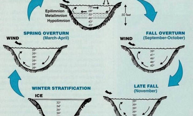 Lake turnover is primarily driven by temperature stratification. During warmer months, sunlight penetrates the water’s surface, creating distinct thermal layers. The upper layer, known as the epilimnion, is warm, while the deeper strata, marked as the hypolimnion, remain cold. This thermal stratification persists until temperatures begin to drop in autumn, leading to the phenomenon of turnover. The cooling of surface waters increases their density, causing them to sink and displace the warmer waters, thereby catalyzing a complete mixing of the lake’s layers.