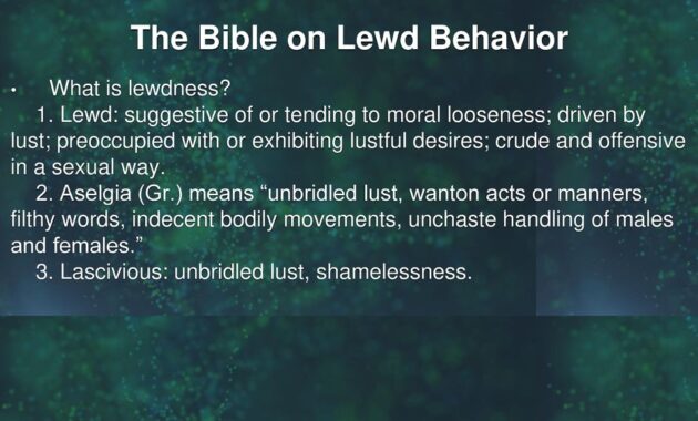To grapple with the concept of lewdness is to engage in a nuanced exploration of virtue and vice. It compels individuals to critically evaluate their choices and their reverberations in communal spheres. In contemplating the biblical interpretation of lewdness, one may discover a sturdy framework for ethical living, encouraging a profound re-assessment of personal values in a rapidly evolving world. Thus, the journey into understanding lewdness within biblical contexts promises a transformative shift in perspective that could reverberate through one’s moral framework.