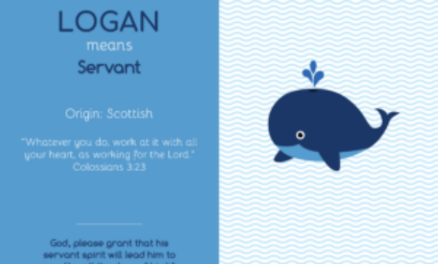 Furthermore, in biblical literature, names frequently convey attributes or prophetic meanings. For example, the name Joshua means “The Lord is salvation,” a suggestion of his imminent role as a leader bringing hope to the Israelites. In this context, one could contemplate what Logan might signify if it were to bear a biblical connotation. The very nature of the name, with its meaning of a “little hollow,” could symbolize humility or the notion of being a vessel for something greater.