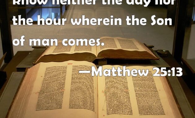 Matthew 25:13, a verse steeped in theological significance, prompts believers to contemplate the weighty admonition to “watch therefore, for you know neither the day nor the hour.” This excerpt emerges from a parable that Jesus employs to relay profound truths about vigilance and preparedness in the face of the unknown. At first glance, one might ponder: what does it truly mean to “watch,” and how does this concept challenge one’s daily existence?