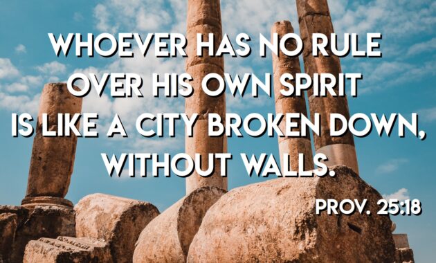 In delving deeper, one might ponder the philosophical implications of self-control. Is it merely a personal struggle or a reflection of one’s moral and ethical framework? This inquiry leads to further reflection on the societal constructs that shape our understanding of discipline. Ultimately, Proverbs 25:28 serves as a timeless reminder that self-control is indispensable. It encourages individuals to reinforce their metaphorical walls and nurture the resilience required to withstand life’s vicissitudes.