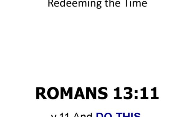 “Redeeming the time” is a phrase that often evokes curiosity, prompting us to contemplate our relationship with temporality. What does it truly mean to redeem time? Is it merely a philosophical notion, or does it have practical implications for our everyday lives? In contemporary society, where the hustle and bustle of daily responsibilities can overshadow reflective practices, this phrase challenges us to re-examine our priorities.