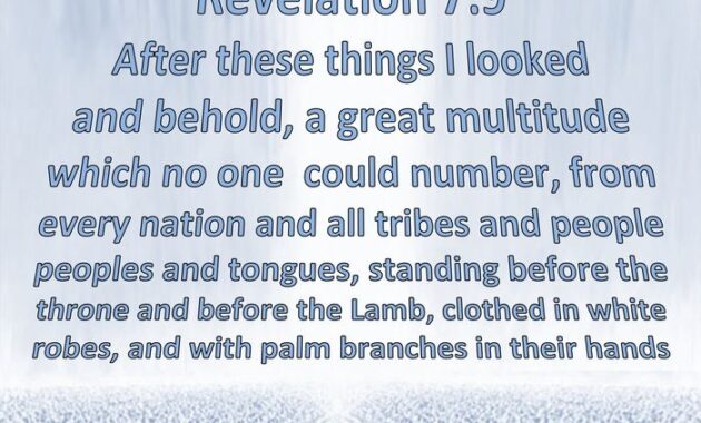 Revelation 7:1-17 presents a vivid tableau that invites readers to explore deep spiritual and existential themes. This passage serves as a reflection on divine protection, the inclusivity of salvation, and the eschatological culmination of human history. To comprehend its implications, one might ponder: what does it mean to be part of a ‘great multitude’ that stands before the throne of God? This question not only sparks curiosity but also poses a challenge to our current understanding of community and faith.
