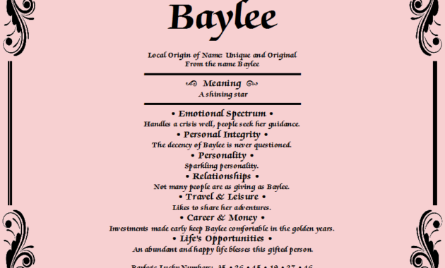 Moreover, the duality of the spelling—Baylee versus Bailey—evokes a sense of personal choice. Parents gravitating towards the variant may be motivated by the desire to impart a distinctive quality to their child’s identity. This inclination to opt for alternative spellings is not merely superficial; it often reflects deeper aspirations for the child’s future. The desire for uniqueness in naming can hint at aspirations for individuality in a world that increasingly celebrates diversity.