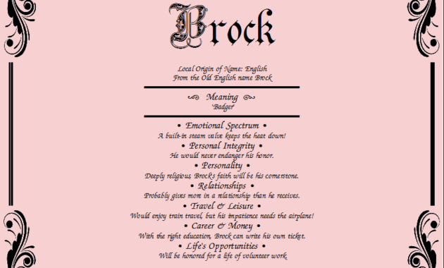 Names can play a pivotal role in shaping one’s identity, affecting everything from how individuals perceive themselves to how they are perceived by others. A positive connotation is attached to Brock, often associated with attributes such as strength, independence, and determination.