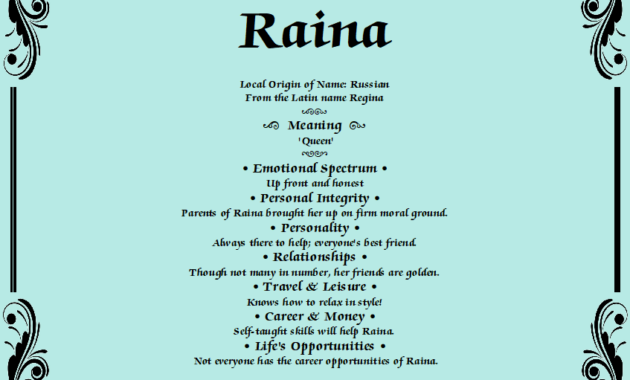 Furthermore, those named Raina often exhibit traits associated with its meanings: nurturing, intuitive, and strong-willed. They may find themselves drawn to creative pursuits, harnessing an innate ability to express emotions vividly, akin to the transformative power of rain nourishing the earth. Personalities named Raina often become leaders in their communities, acting as beacons of hope and inspiration for others. The name, then, is not merely a label but a reflection of a multifaceted identity that underscores the wearer’s inner strength and outer grace.