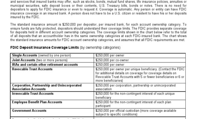 The FDIC insurance is a cornerstone of financial stability, offering a tangible safeguard against unforeseen economic shocks. It’s the bedrock upon which you can build a secure financial future. By understanding the scope of coverage, the nuances of ownership categories, and the limitations of the insurance, you can make informed decisions that protect your hard-earned savings and cultivate a flourishing financial landscape.